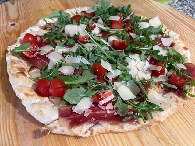 - Pom., mozz., speck, rucola, scamorza affumicata