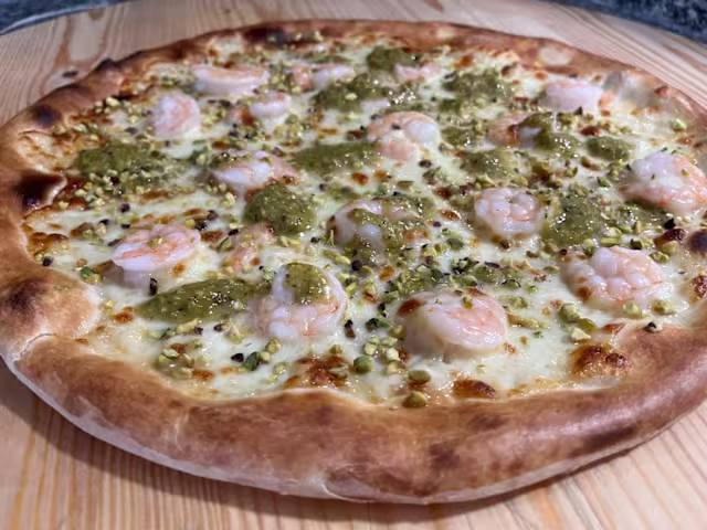 - Pom., mozz., fr. di mare, gamb., spinaci, salsa piccante