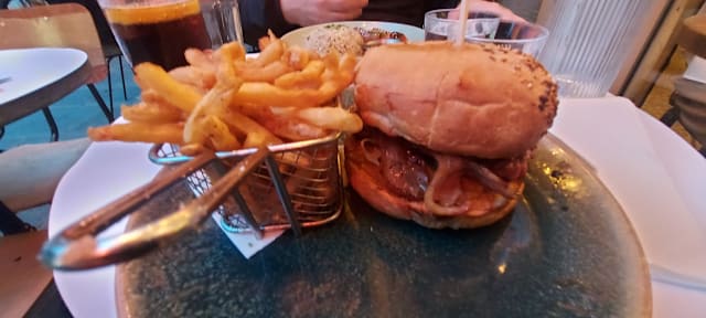 10/10We had lovely outdoor seating. Our server was very attentive and friendly. My husband loved his salmon dish and my burger was exceptional. A great last meal in Paris.