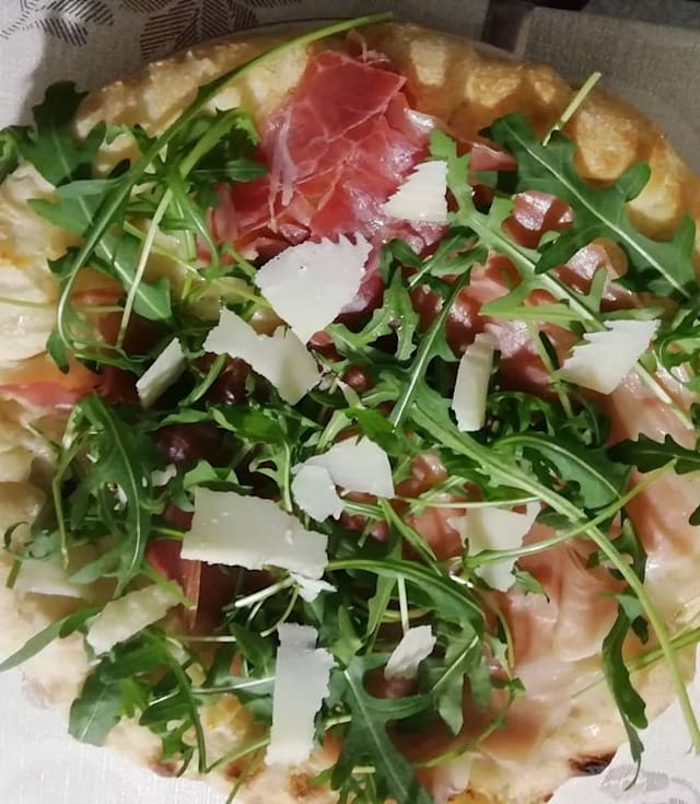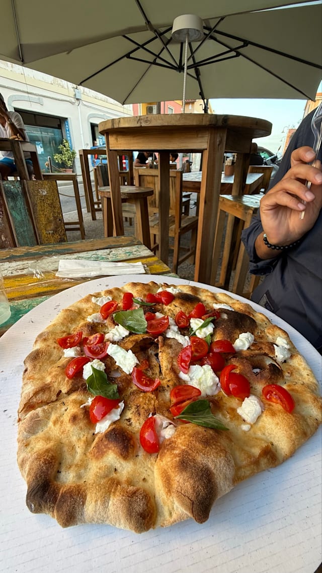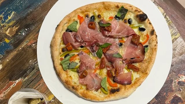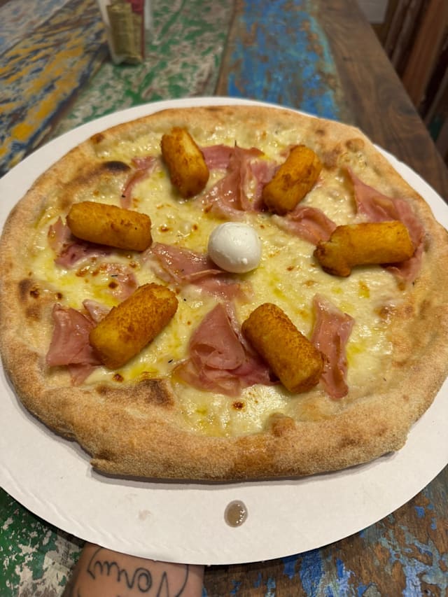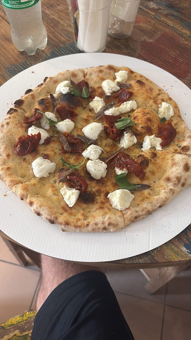 (Bufala, pomodorini semi secchi, acciughe, basilico, sale nero)