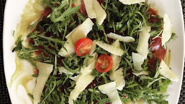 - Carpaccio manzo (carne de vitela c/ parmesão e rúcula)