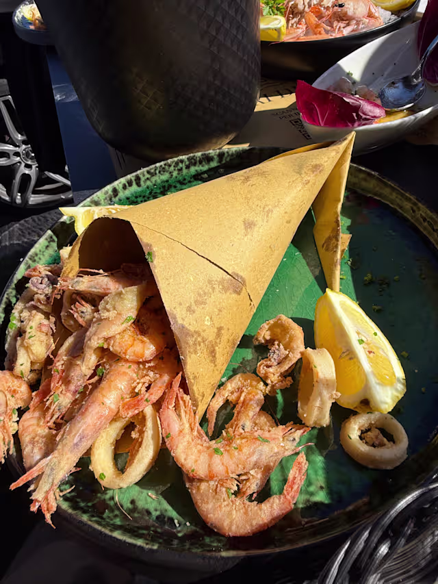 - (calamari, spada, gamberoni). Serviti con contorno di insalata mista