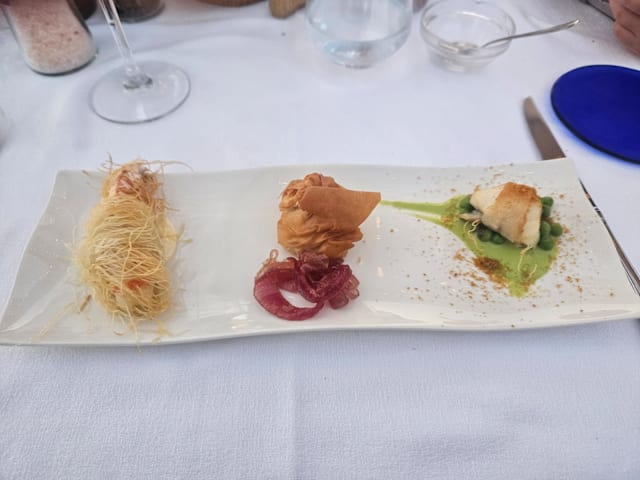 9/10Extremely nice setting, on the terrace along the sea, to dream away. Service and welcoming very good and professional. Food very nice, but that extra touch that would make it all perfect is missing. Price/quality good.
