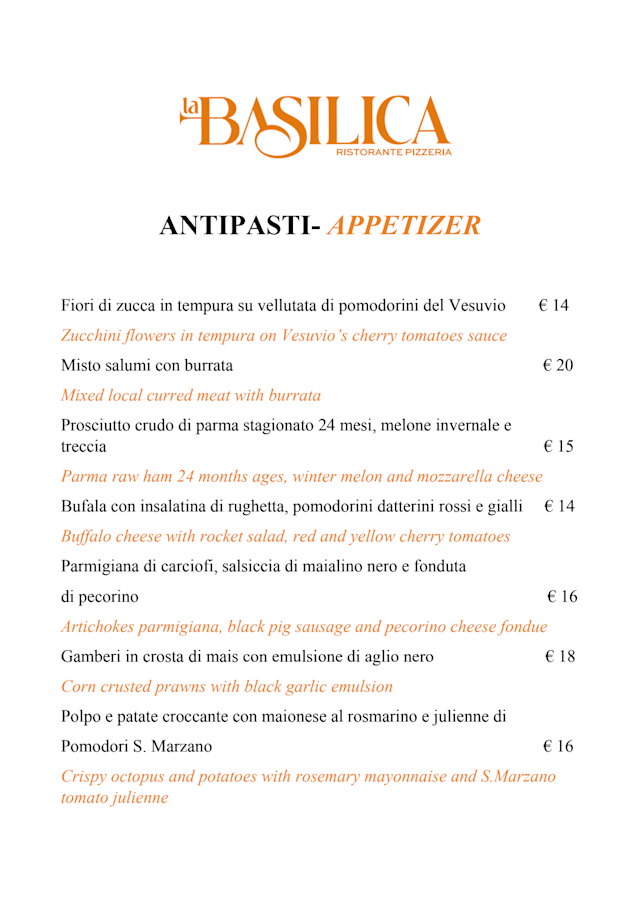 9.5/10La Basilica is a wonderful restaurant. The menu offered a variety of unique options and everyone in our party had an amazing meal. The staff and service were fun and welcoming. A great atmosphere and beautiful meal in the heart of Sorrento.