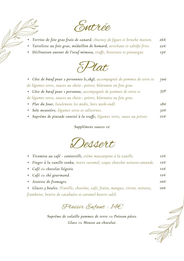 10/10The food was delicious, with the fish properly cooked and the steaks just exactly as requested - medium rare. The vegetarian appetizer that one of our party enjoyed was not only delicious but also beautifully presented. We shared one excellent dessert. Our server was pleasant and attentive. They have a lovely terrace that we would have enjoyed had the weather been cooperative.