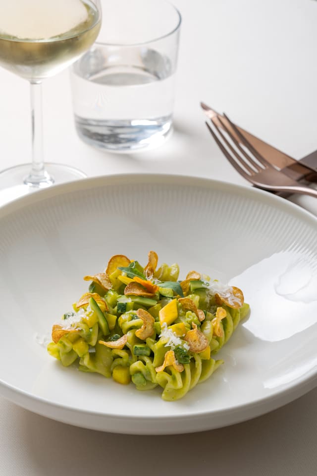 Sugo di rana pescatrice, polpa marinata e cipollotto verde