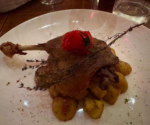 10/10Adorable, cozy restaurant with very friendly wait staff. They could not have been more welcoming and then came the amazing food. We shared a wonderful salad with bacon and cheese and both of our meals were delicious! I had confit de canard (duck) and my partner had tuna. The chocolate dessert with whipped cream was to die for. The wine was perfect and served in beautiful glasses. We will be back!!