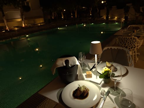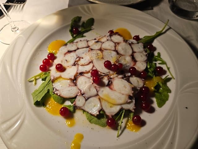 8/10We sat on the terrace by the pool on a rainy night, so it was enclosed. Interesting menu, attentive service, relaxed atmosphere - all contributed to a very peasant evening. Food was very good. Octopus carpaccio starter looked beautiful and was delicious. Bottle of Lachrymi Christi was a good accompaniment to seafood and very reasonably priced. I would very happily go back if I get the change. Good value.