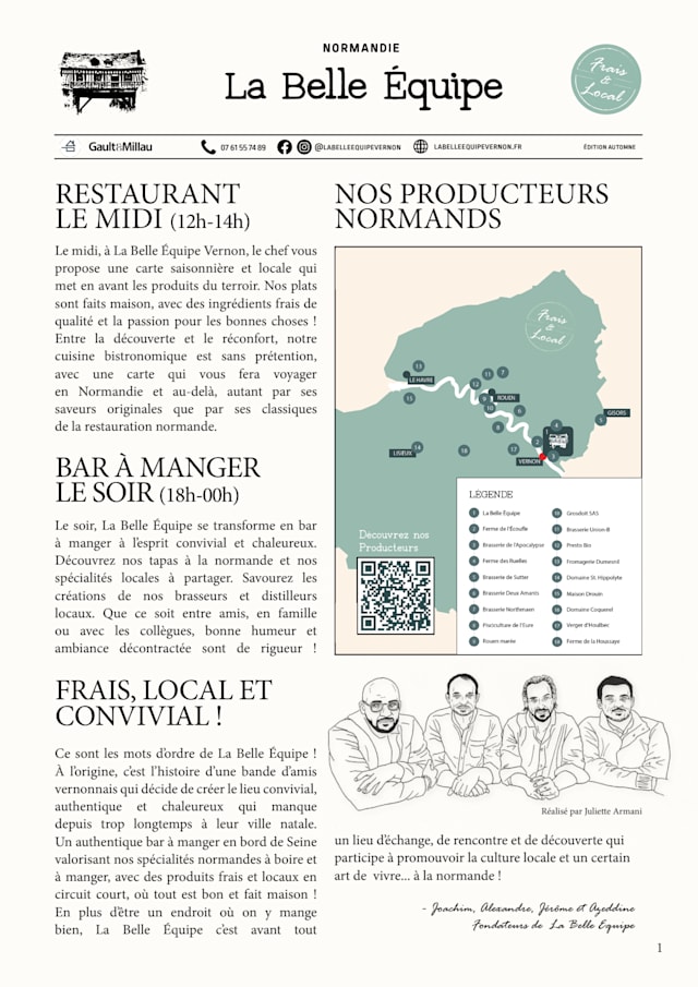 10/10The team at La Belle Équipe are warm, welcoming and knowledgeable. It was pleasure to discover this little gem in the medieval corner of Vernon with lovely views on the river. I recommend it wholeheartedly.