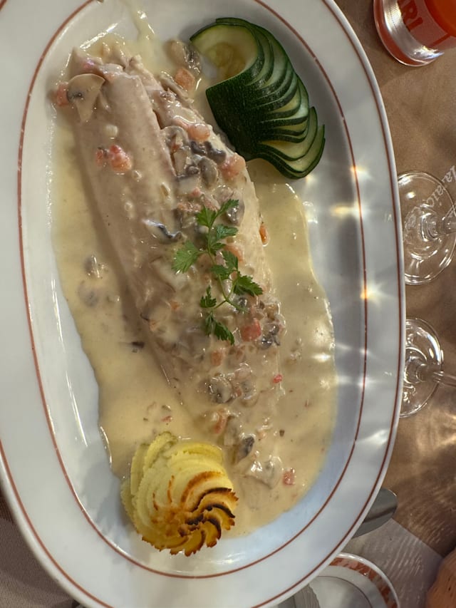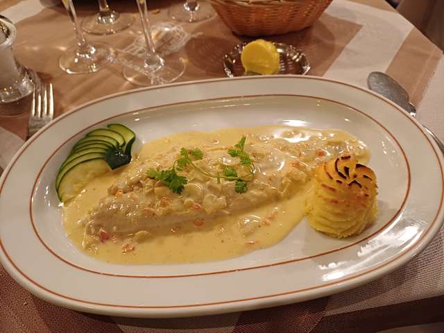 8/10We ordered the lobster fricassee and their North Sea Fishermen's Bouillabaisse. I found the lobster fricassee sauce to be a bit on the sweet side but the amount of lobster was sufficient (considering the price of 45 Euro). The bouillabaisse was delicious. There was a generous amount of fish and I loved the soup. Plus this dish came with some crispy bread and a sauce that was spicy. We really enjoyed the main course. We were not so impressed by the starter we had - Skate and Tiger Shrimp Terrine. However, this could be because we don't usually eat terrine in my culture.