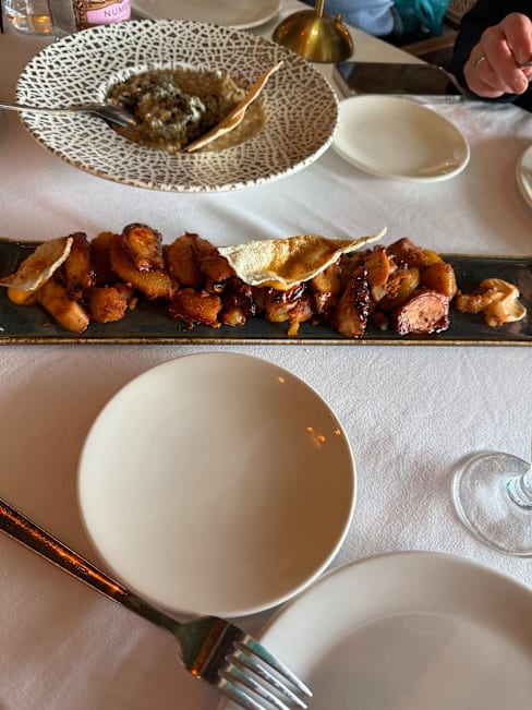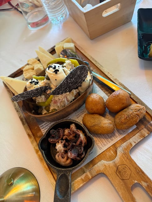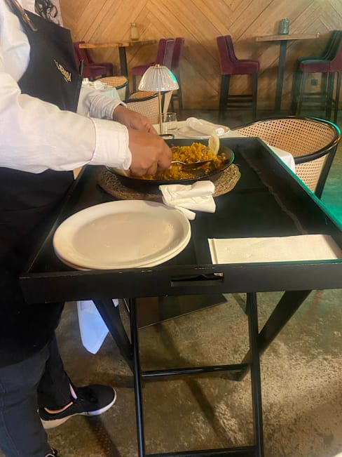 7.5/10The service and decor was lovely. We were however surprised by the amount of salt in the dishes - unsure of this is common in Spain but the pork paella and potatas bravas were particularly salty to the point we were unable to eat a lot. Which was a real shame as the pork and texture of the paella was perfect. Also just as a heads up the potatas bravas serving was HUGE! Enough for 4/5 people.