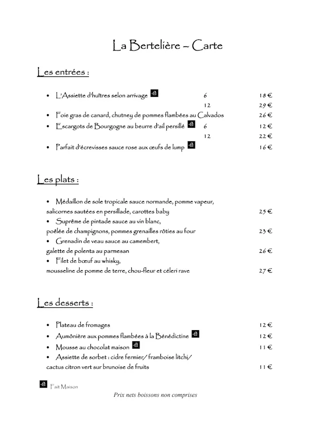 Menu Normandie€52 per guest