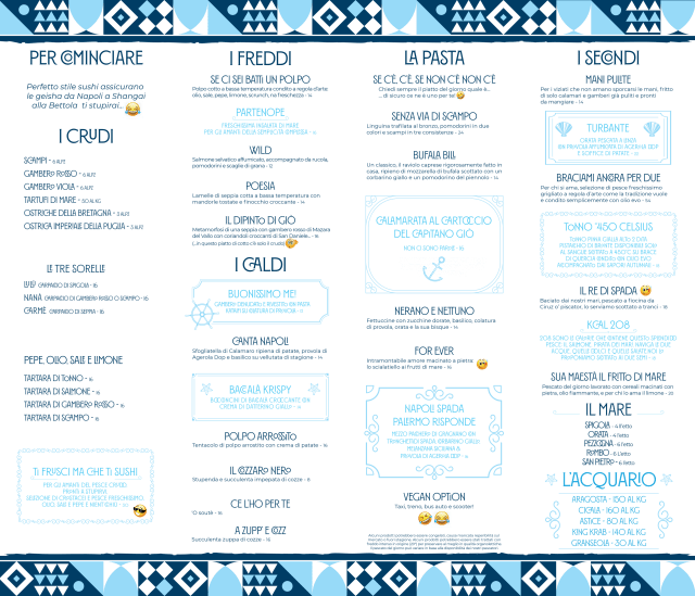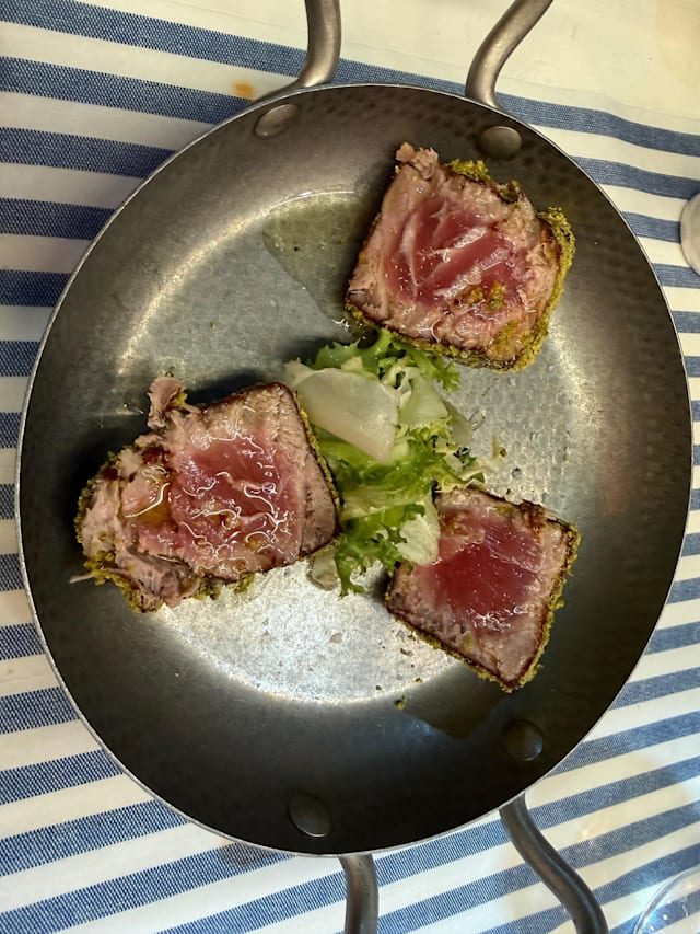10/10A fantastic menu with some sense of humor. Excellent food, perfectly prepared and served by a family run business. Don’t miss the deserts specially il babba, it is worth it.