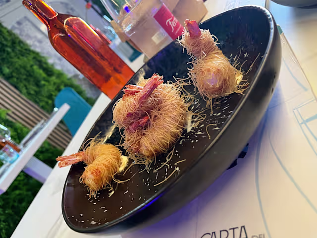- Gambero denudato e r ivest ito con pasta kata if i su colatura d i provola