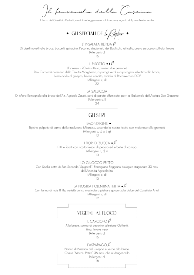 Wonderful location, cozy, warm, romantic. Great dishes and exceptional ingredients, including the hyper-sophisticated prosciutto d'Osvaldo, a rare find mostly known by Michelin-starred restaurants and a treasured secret for a few lucky ones who know about it. The meats were exceptional, and the service was spotless. It is very close to Milan but away from the crowded, too often oppressive, and increasingly overrated city restaurants. It can take you less to get there from the center of Milan, rather than crossing the whole city, and that is one more reason to recommend it! A very impressive experience.