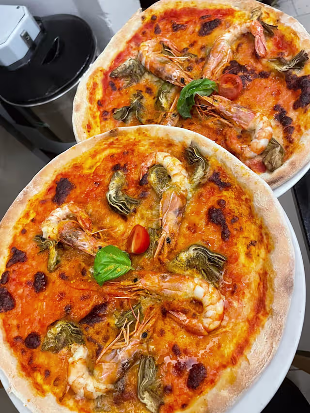 - Pomodoro mozzarella cotto, funghi olive e carciofi