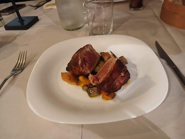 - in crosta di pancetta su caponatina di verdure