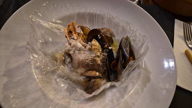 - saltati in padella con semi di sesamo, pomodorini e olive taggiasche su crema di patate