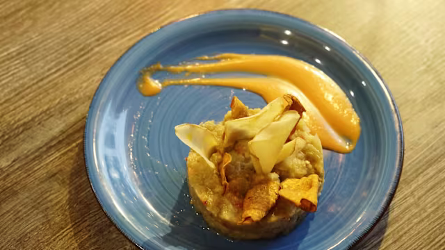 - Crujiente de carrillada con salsa de calabaza al pacharán