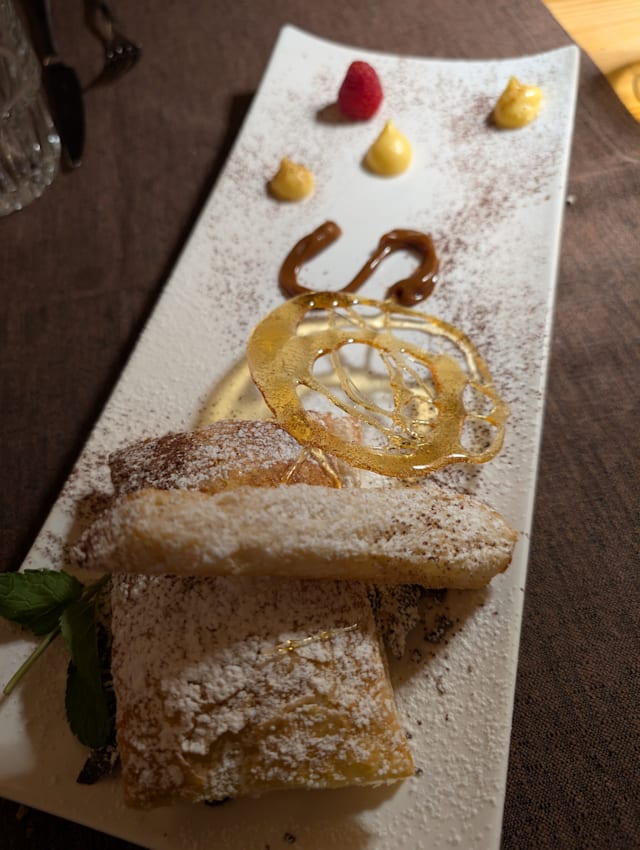 [ Millefoglie con crema pasticcera e scaglie di cioccolato ]