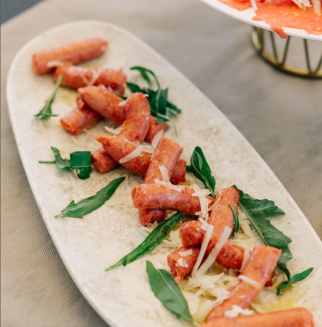 - Salsiccia fresca, preparata con carni selezionate, servita con solo olio, sale e pepe, accompagnata da pane caldo