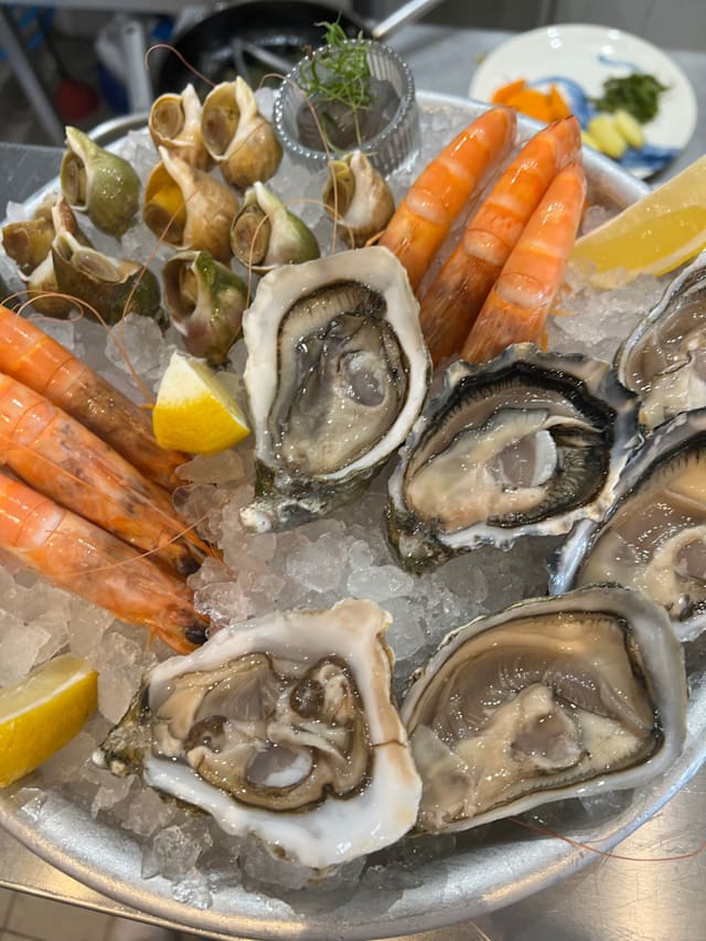9.5/10Fast and courteous service. We had the selection of appetizers, then oysters and raw shrimps. Everything was excellent and the kitchen was visible through a display window, so that we could see how the food was being prepared. The price was very reasonable. We will definitely go back!