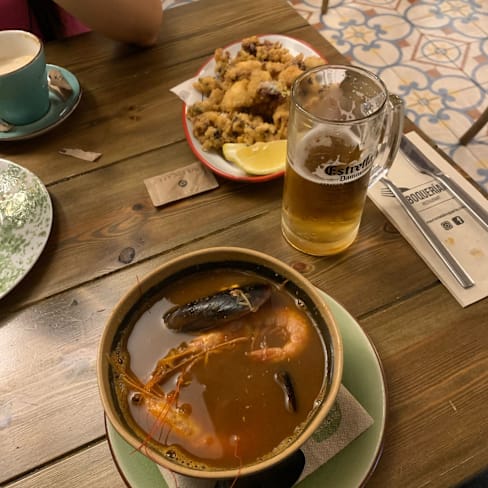 9/10Pleasant restaurant close to the Rambla. You can find all the dishes typical of Spanish cuisine: tapas, paella etc. Food was good and the service very kind