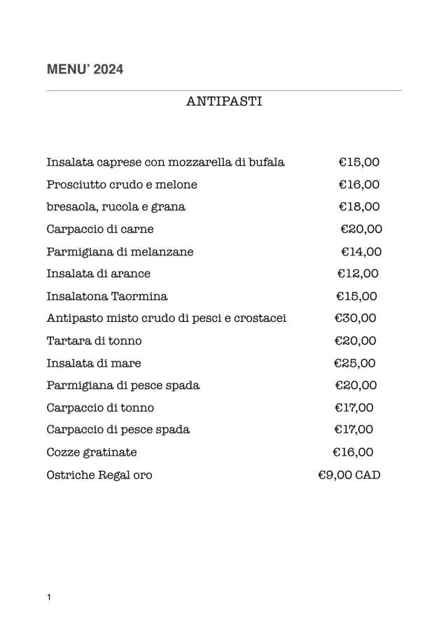 7/10The best of this restaurant is the vibe. It looks really Italian atmosphere. The food is acceptable in terms of quality-price. The service is Italian as well: "A chaos". Waiters are disorganized attending all of them to all the tables and there is a kind of a "maitre" (it looks the owner) a little bit lost in the middle of the jungle of tables. There is lady at the entrance trying to control the reservations with not really good manners. Anyway, the place deserves to pay a visit. Unfortunately there are not too many restaurants in Taormina keeping the Italian vibe. Too much touristic exploitations without authenticity. Overexploited location.