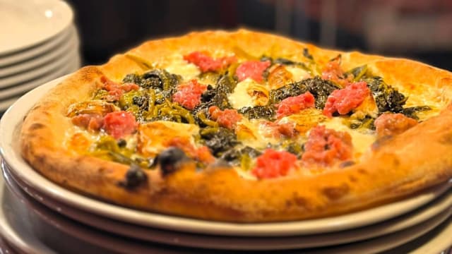 Fiordilatte, provola affumicata, salsiccia, friarielli, olio evo