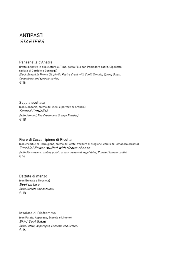 7.5/10The service was excellent. The wine I had was for my taste the best wine I had during my two week trip in Italy. The major drawback was the fish I ordered. It was cooked in a dough salt on one side, why the chef even used this method made no sense to me because could not eat the dough and it was a waste of the salt. Literally the fish was a few bites and was not something home to write about with the cooking technique the chef incorporated. For the value of the fish charged, it was not worth it.