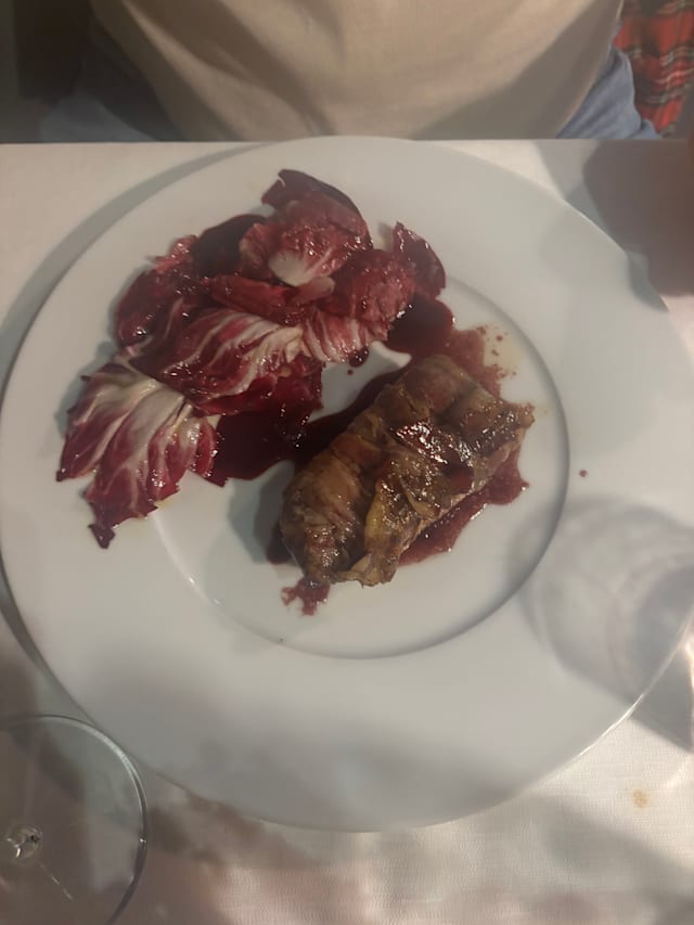 Sgombro alla brace, yogurt, radicchio e ciliegie