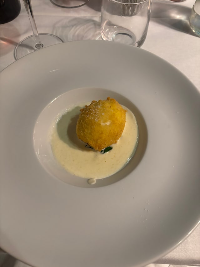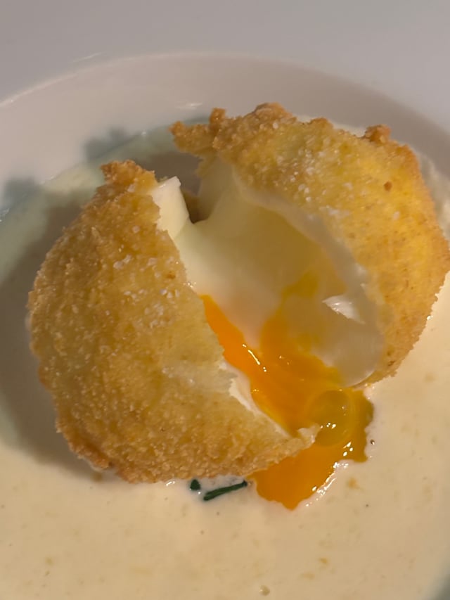 Uovo della bottega, fonduta leggera di parmigiano e spinacino