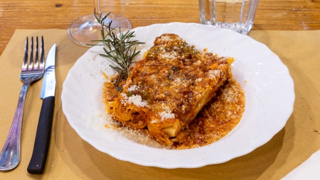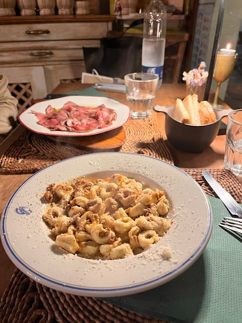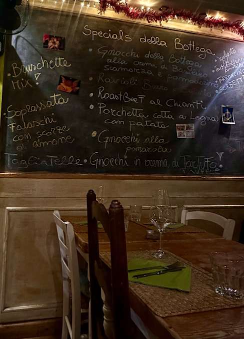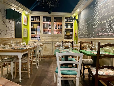 10/10A cosy and small place, not a real restaurant but a bottega with local products and specialities. Very kind staff, we enjoyed talking to Lorenzo. We got great service, good wine, fresh food and an unforgettables alame al cioccolato con cantucci. Very good varietu of vegetarian dishes as well.