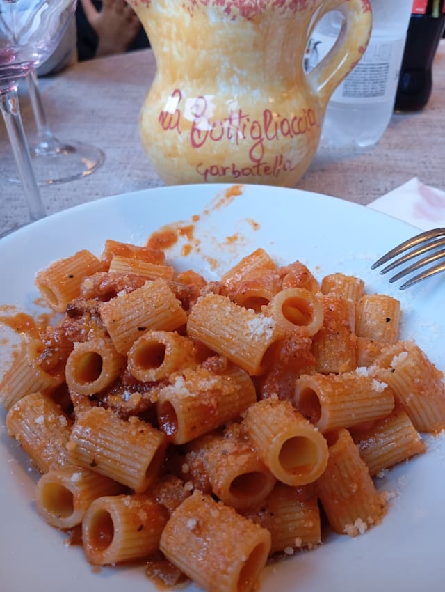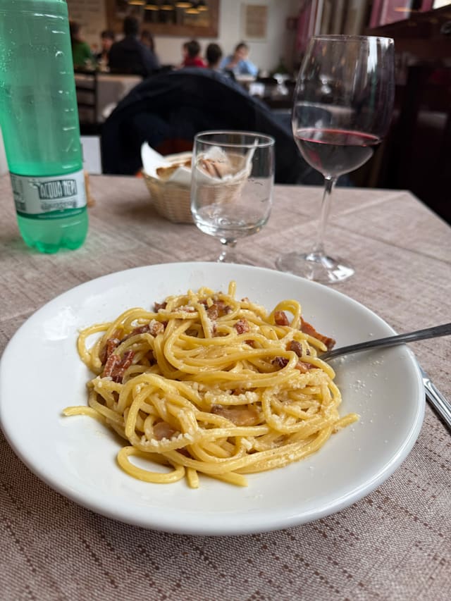 10/10Very easy going owner. Awesome typical roman kitchen. We personally got Amatriciana and cacio e pepe. Delicious and overall great experience!
