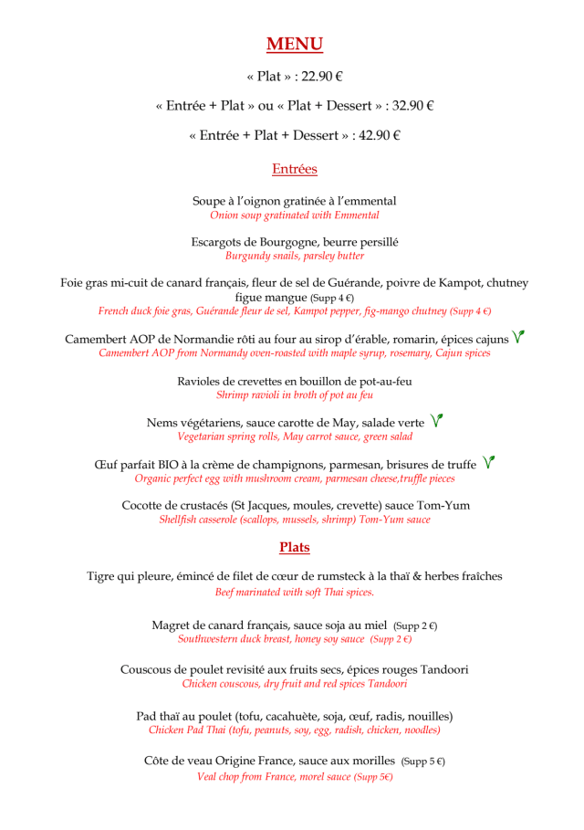 10/10Excellent food. The Asian and French combo resulted in absolutely delicious food. The price was low for the quality of food and the ambiance. One of the best meals in Paris.
