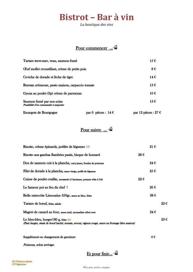 9.5/10I have been several times now. Lovely location. Very French but not touristy. Food is really very good. Wine choice is limited but its worth listening to recommendations as they do know their wine well. Ac on the summer .