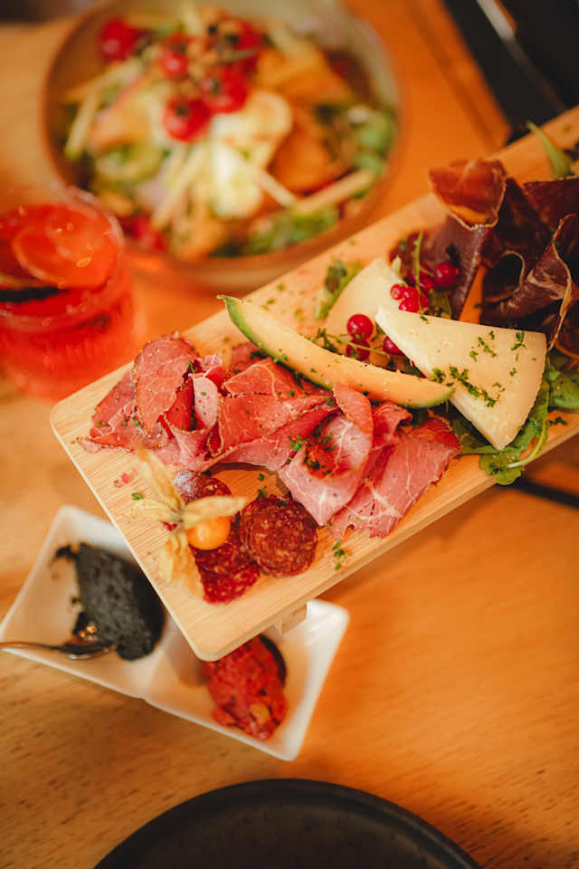 - Sélection de charcuteries, fromages affinés et fruitsde saison.