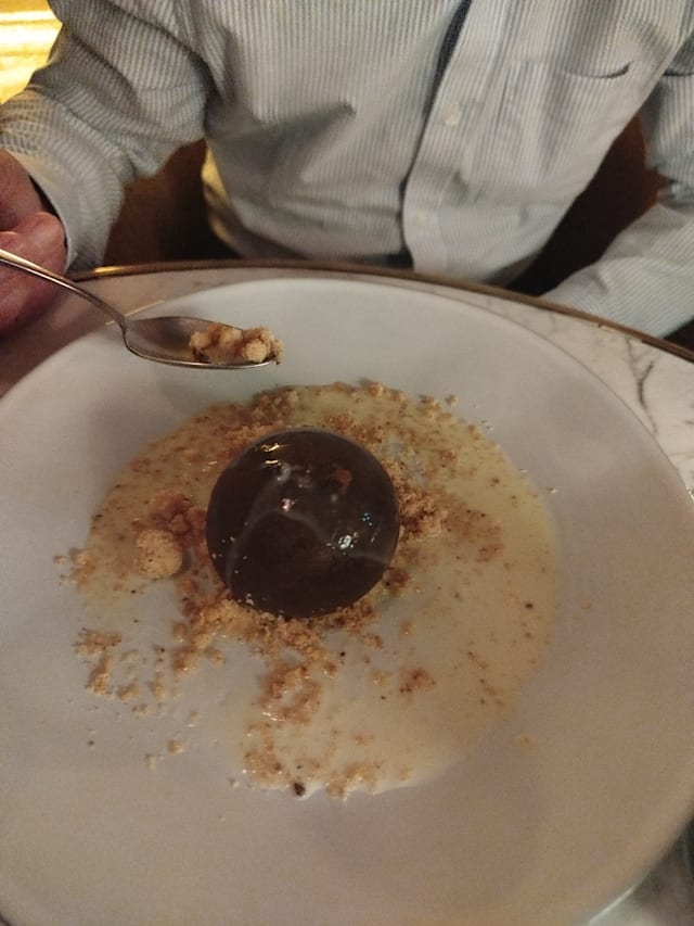 Puerros asados, crumble de avelllanas y vinagreta de trufa