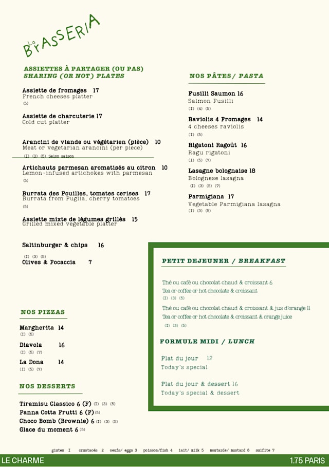 La Brasseria 175 Le Charme is identified as offering italian cuisine.