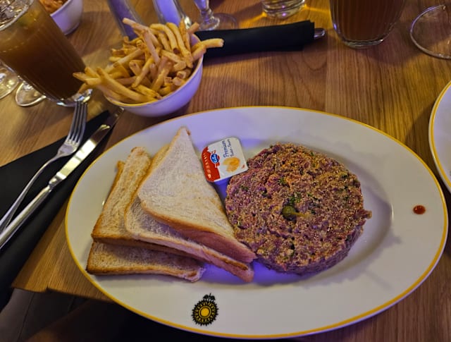 6/10Very nice food, but while having different sides option (fries, mashed potatoes, etc) it is not possible to switch from mashed potatoes to fries from a plate because it might bother the chef. All desserts are not available, nor the cafes. But the quality of the food is very good and quite tasty !
