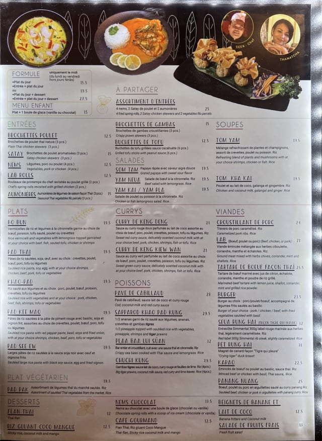 8.5/10Excellent Thai food was a treat in Paris for when we got tired of classic French food on our vacation. The service was top notch. The server spoke no English but it was not a problem - the menu is fully translated into English. Our meals were excellent. We got the spring rolls, the prawns, the satay, pad Thai, duck and red curry. Everyone enjoyed their meal.
