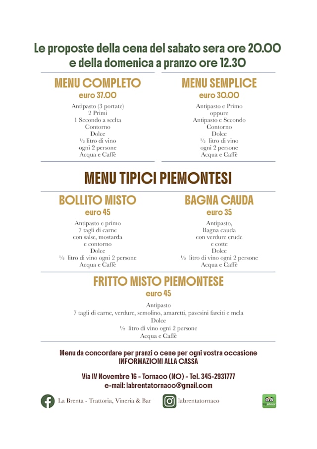 MENU COMPLETO DEL WEEK-END 29/30 Novembre€37 per guest