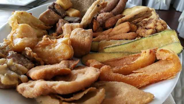 - Antipasto + 7 tagli di carne, verdure, semolino, amaretti, pavesini farciti e mela + dolce + ½ litro di vino ogni 2 persone + acqua e caffè