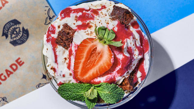 Purée de fruits rouges, menthe, citron vert, jus de cranberry