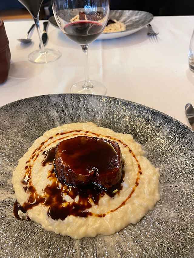 Riso carnaroli "riserva san massimo" allo zafferano, mantecato con burro e grana padano riserva selezione da fieno