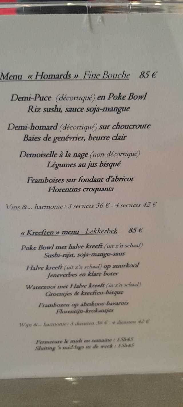 10/10Excellent food and pairing wines, appreciated the Bob formula. Very attentive and friendly service.