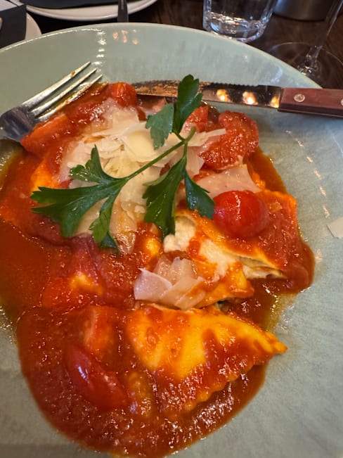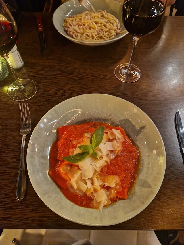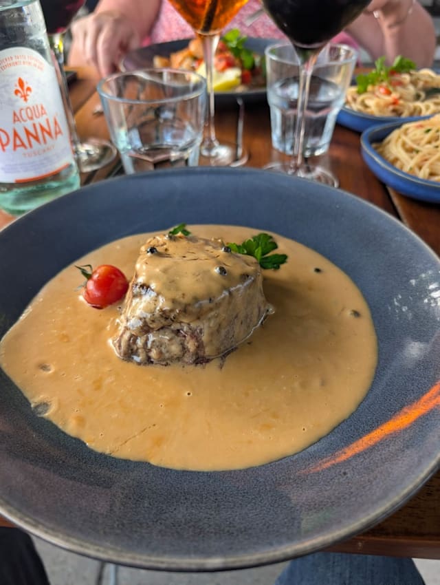 5/10Pretty disappointed with the quality of the food. Summary - Starters were decent, but mains were poor. Starters - meatballs (nice 4/5), gambas(good 4/5), bruschetta (4/5). Mains - saffron red snapper (poor - over done), ravioli and penne (both had extra ordinary amounts of sour tasting, poorly seasoned, tomato sauce - more school canteen than a meal out with the family), pizza (margarita) - it was the same tomato sauce with tons of cheese. Deserts were pretty good
