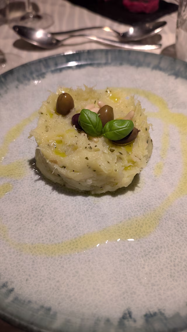 - Filetto di pescato del giorno rivisitato alla ligure su crema di patate