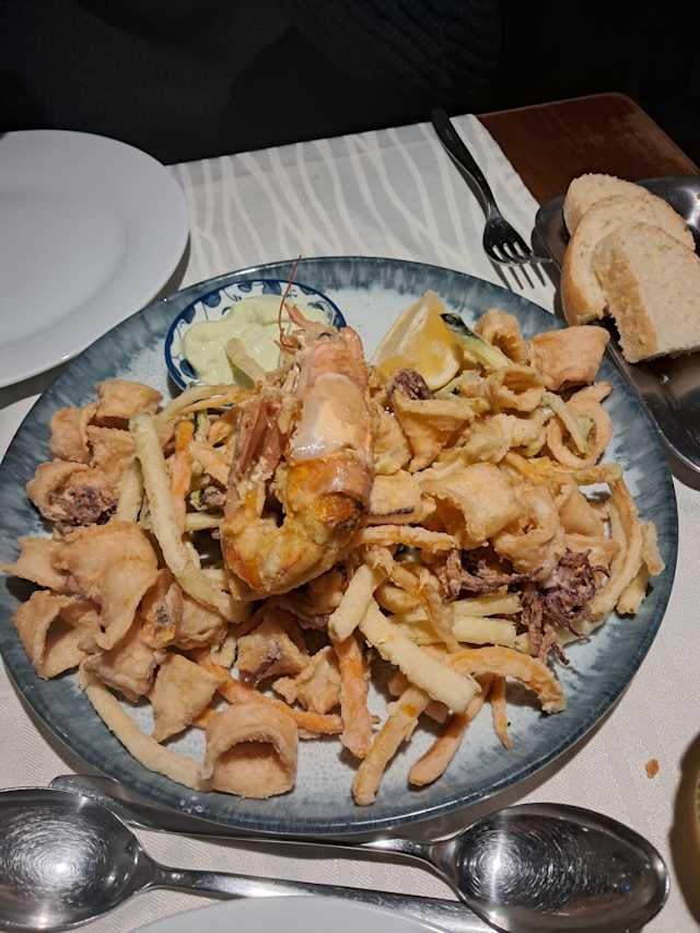 - Gran fritto di mare “della buca” con verdure di stagione con salsa alle erbette