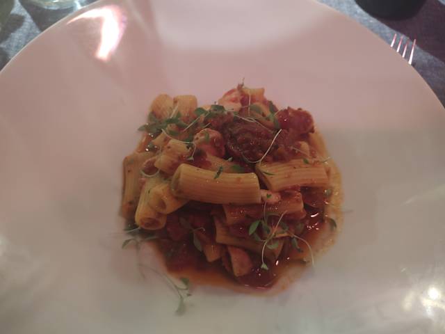 salty cannoli stuffed with brandacujun, tomato sauce with ligurian falvuors